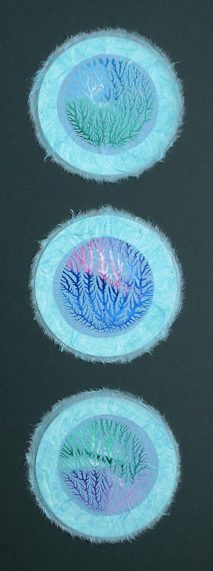 Mulberry paper also found its way into the dendritic monoprinting technique used in Fractal Forest (right, acrylic on mulberry paper).